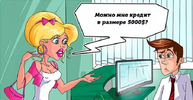 Собираясь в отпуск, блондинка зашла в Нью-Йоркский банк за кредитом в 5000 долларов.
