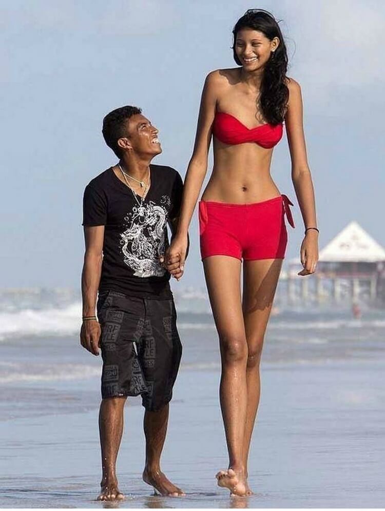 Самая высокая в мире девушка Элисани да Круз Сильва (рост 206 см) и ее муж (162 см).