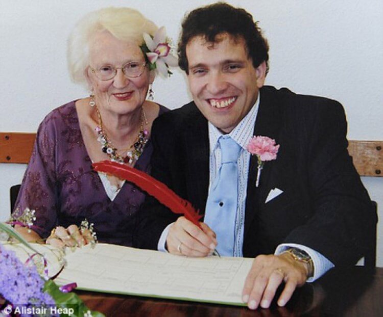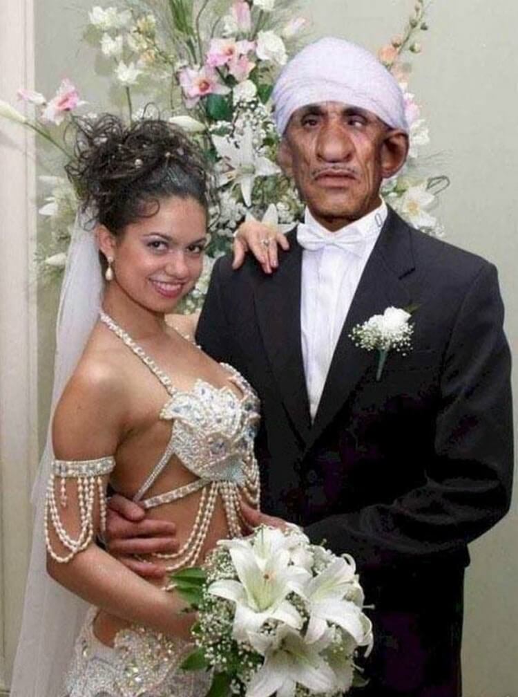 Молодой парень и его новоиспеченная жена, которая годится ему в бабушки.