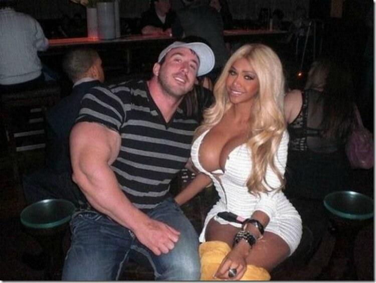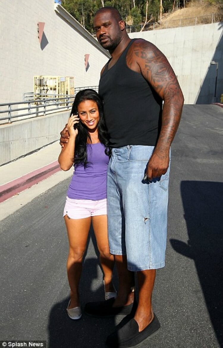 Баскетболист Шакил О’Нил (рост 216 см) и его миниатюрная жена (157 см).