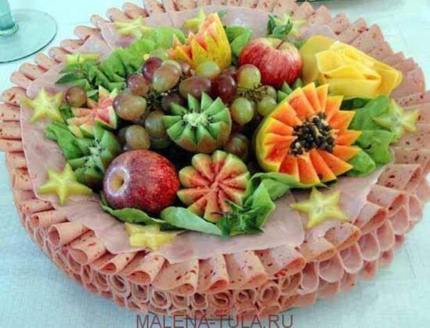 Впереди сезон множества праздников, банкетов, фуршетов, корпоративов и приемов гостей. А так как все мы знаем, что красиво сервированный стол делает еду еще вкуснее, и добавляет «плюсиков» хозяйке мероприятия в глазах окружающих, мы собрали для Вас множество примеров оформления нарезок из мяса, рыбы, овощей, фруктов, сыров и т.